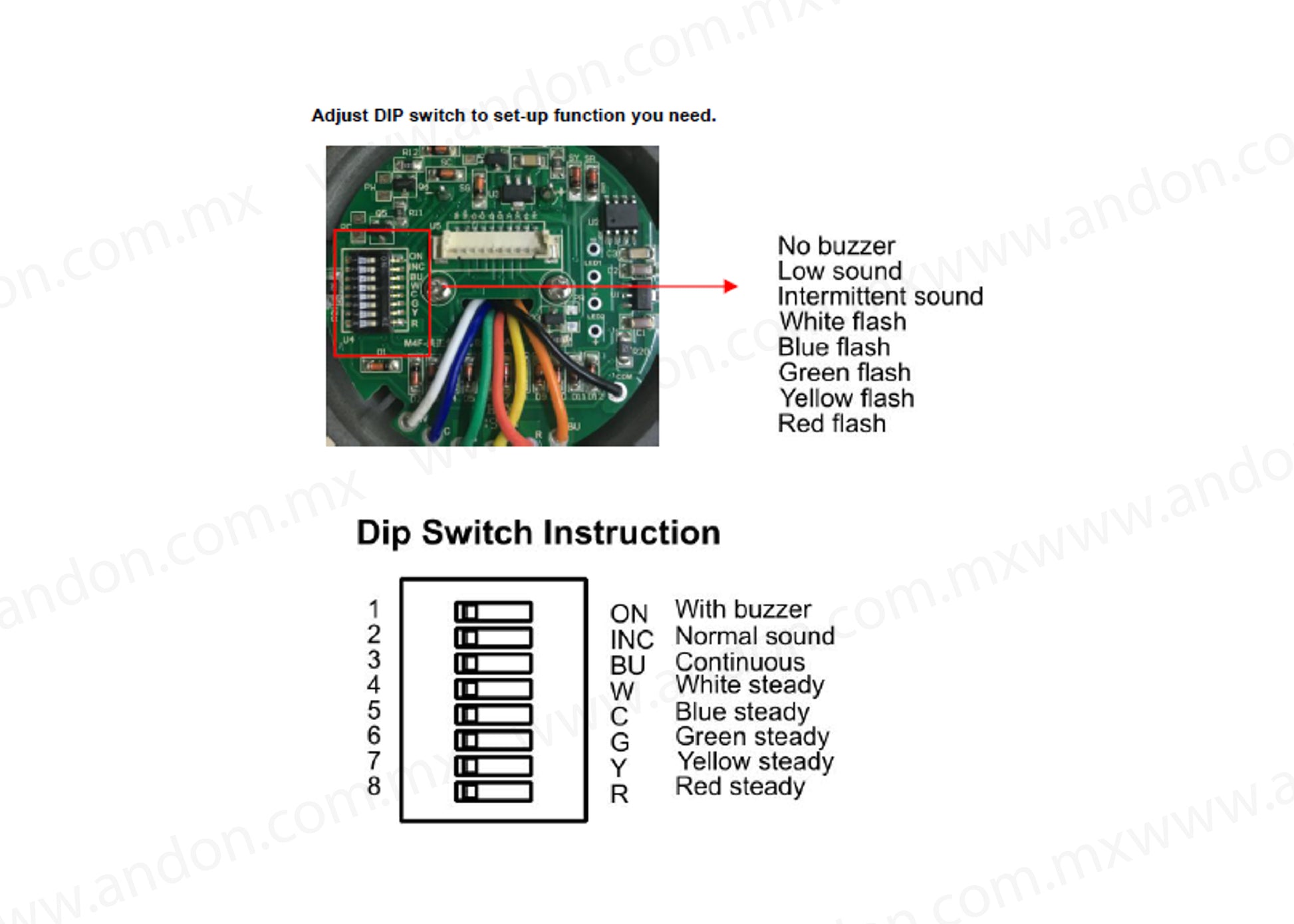 •El modo de iluminación pueden ser cambiados por el usuario por cada luz independiente: Luz flash, luz mantenida, buzzerapagado, buzzerencendido, buzzervolumen bajo obuzzervolumen alto